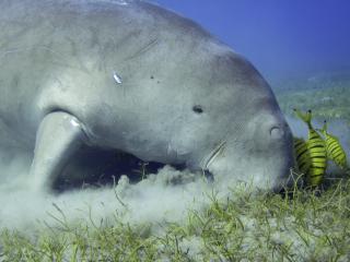 Fünf Mal am Tag findet ein kostenloser Bustransfer (ca. 10 Minuten) vom Hotel nach Abu Dabab statt. Abu Dabab ist eine sehr schöne Bucht mit tollen Riff und als Attraktion zwei Dugongs sowie etlichen sehr großen und nicht sehr scheuen Schildkröten und Gitarrenrochen. Hier kann man auch bei stärkerem Wind schnorcheln. |